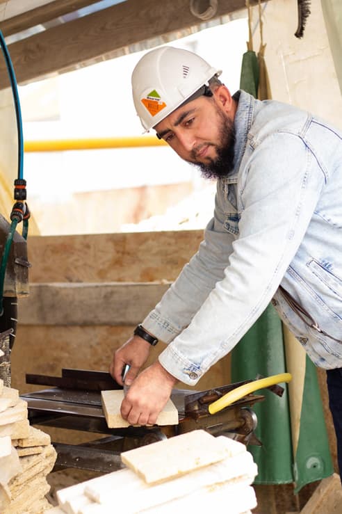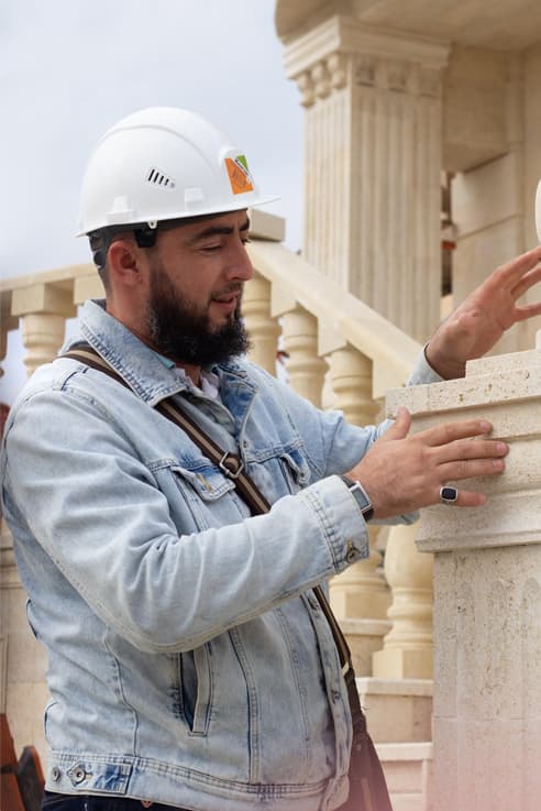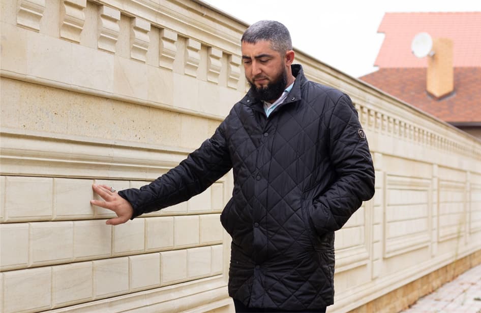 Весь камень везётся из Дагестана. Там более 100 карьеров, от огромных до маленьких, рядом с домом. Камень с карьера приходит блоками весом около 30 кг и уже на объекте пилится на фасадную плитку.